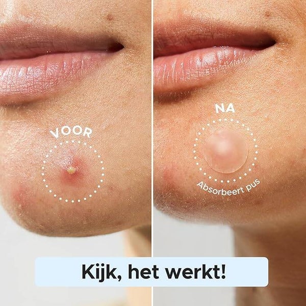 De acnepleisters voor het gezicht zijn gemakkelijk aan te brengen en te verwijderen. Reinig eerst het getroffen gebied, breng de pleister aan en verwijder hem na gebruik moeiteloos. Geen geknoei meer, gewoon een schone huid (tip: breng aan op een droge huid na het reinigen voor een betere hechting en effect).